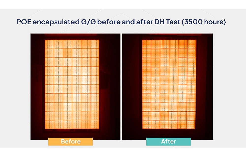 Todos estes detalhes de design tornam-se muito visíveis sob IEC 61215 calor húmido e Teste de PID a 85°C/85% HR: