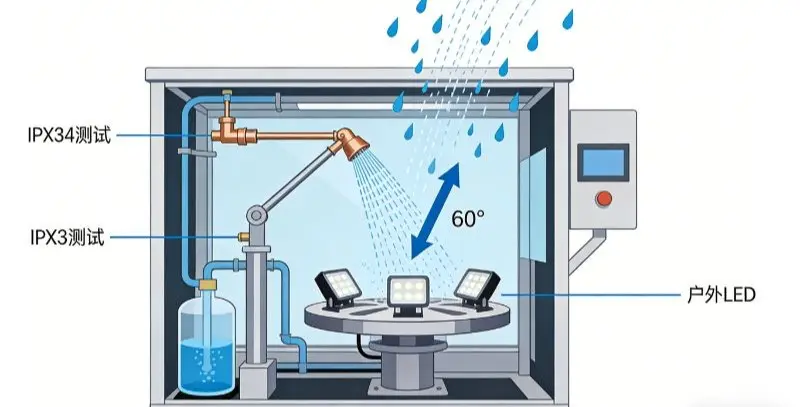 | Target IP rating includes X3 or X4 | Requires testing against spray and splash water |