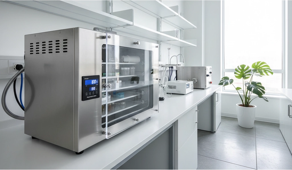 A vacuum drying chamber is a specialized drying oven designed to remove moisture from heat-sensitive and delicate materials under reduced pressure. By lowering the atmospheric pressure inside the chamber, water and solvents evaporate at lower temperatures, protecting samples from thermal damage. This method is essential for industries requiring precise, residue-free drying without oxidation or contamination.